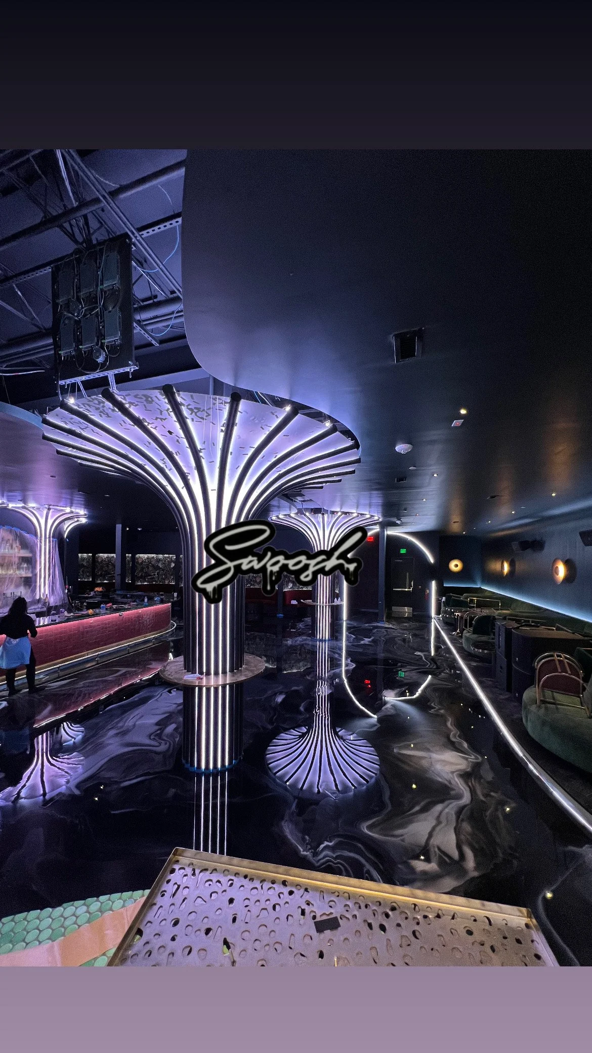 Stunning flooring design for Beso. helps set the tone for the night and makes the space feel as good as it looks